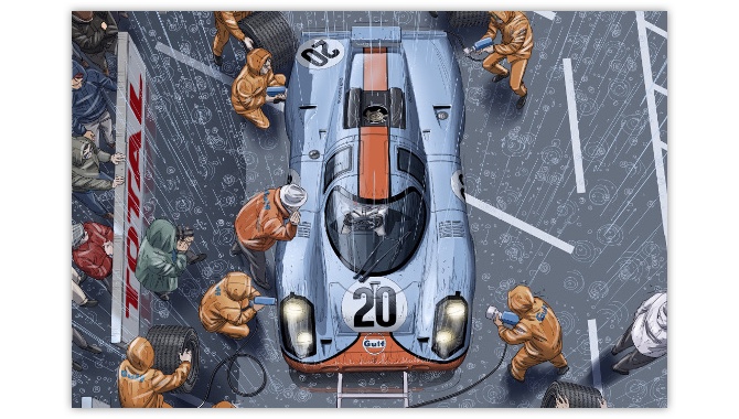 Imprimés sur un magnifique papier texturé, ces impressions en 9 couleurs constituent un magnifique cadeau pour les tous les amoureux de belles voitures.